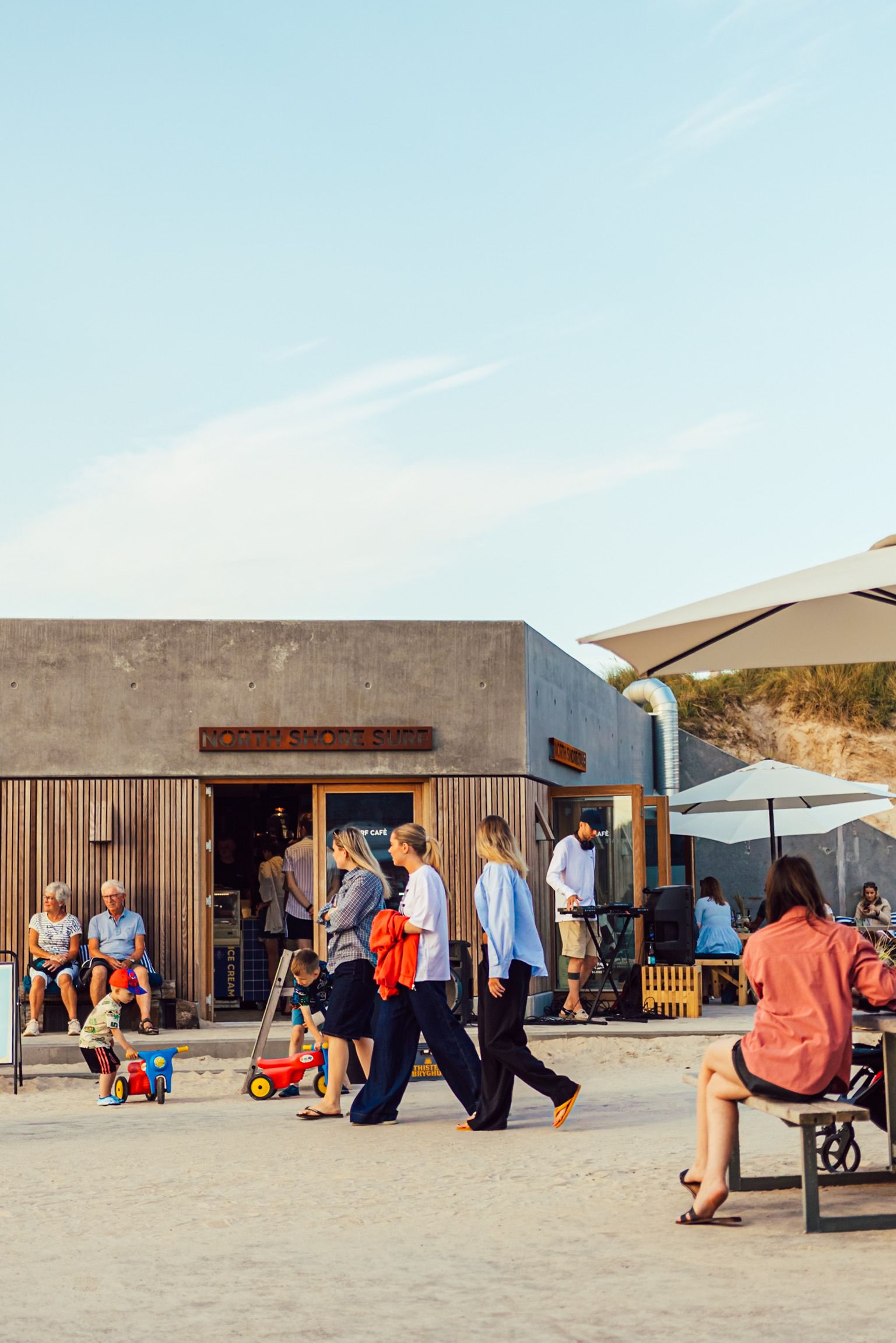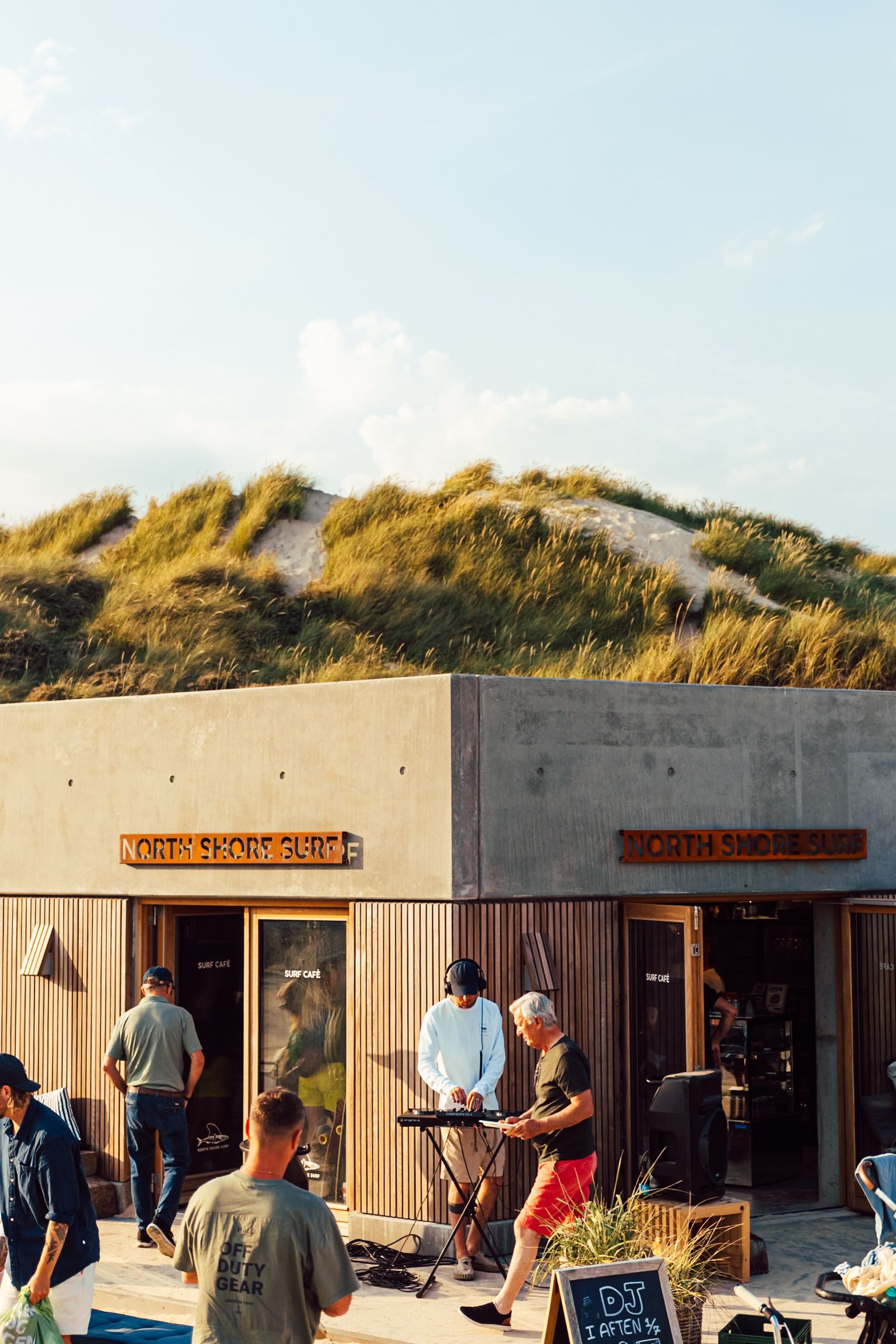 Located in the outer dune row in Løkken, right next to the windswept coastline, we designed and produced a series of facade signs for North Shore Surf.