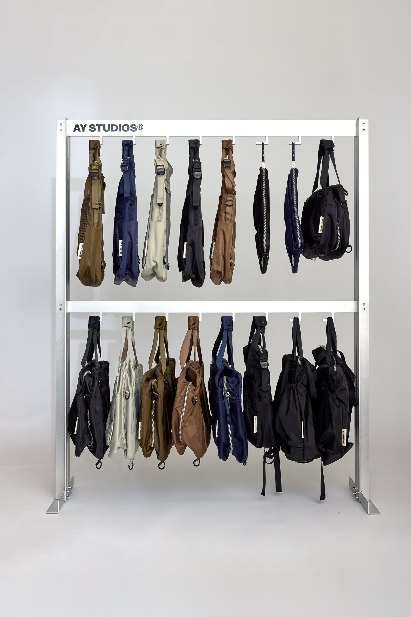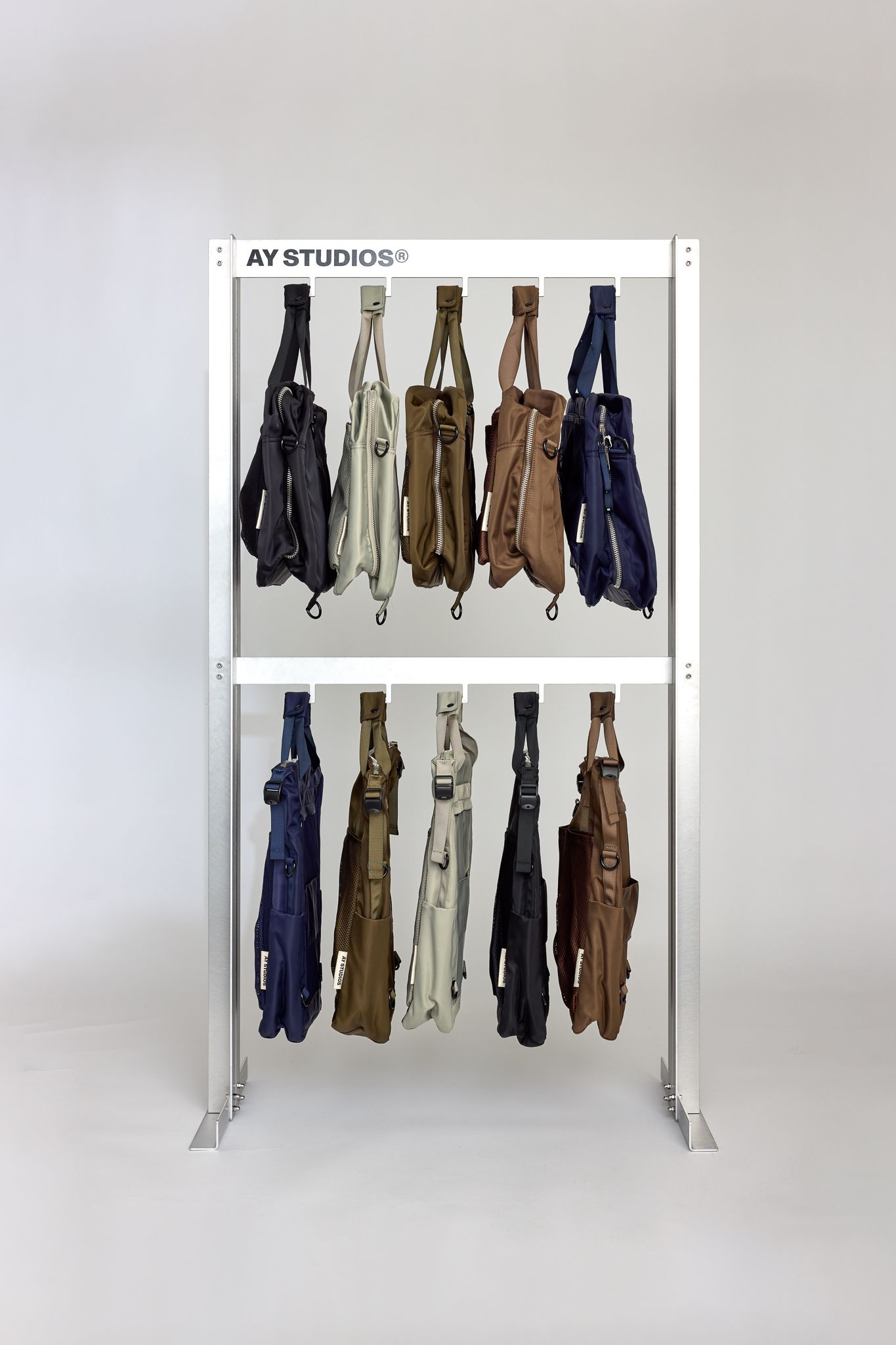 Disse displays er skabt med AY Studious’ vision om en produktion med omtanke. De er fremstillet i genbrugt aluminium uden overfladebehandling og designet efter design to disassembly-princippet for maksimal genanvendelse og fleksibilitet.
